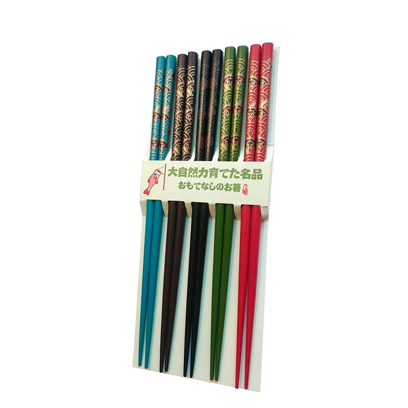 Verabschiede dich von Einweg-Essstäbchen! Dieses Set mit fünf Paar Essstäbchen im japanischen Stil überzeugt mit schönen Farben und langlebigem Design. Aus lackiertem Holz gefertigt, leicht zu reinigen und immer wieder verwendbar. Perfekt für den Einstieg und als stilvolle Ergänzung zum Essen von Sushi, Nudeln und mehr.