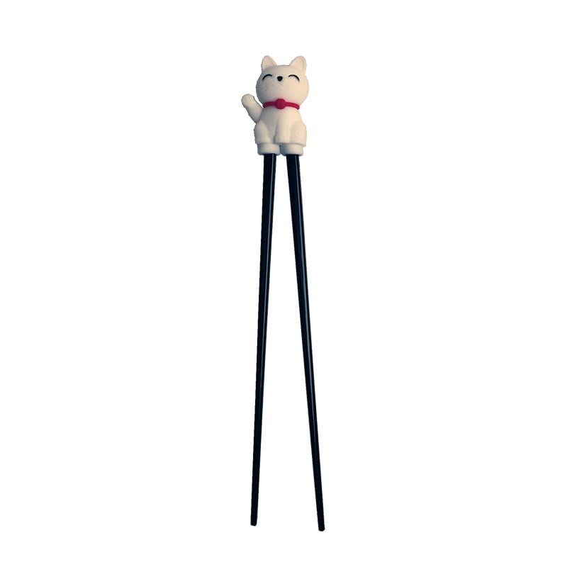 Süße Essstäbchen für Kinder und Familienmitglieder, die gerade anfangen, mit Essstäbchen zu essen. Der Pinzettengriff erleichtert die Benutzung, und eine glücksbringende weiße Katze feuert das Üben an.