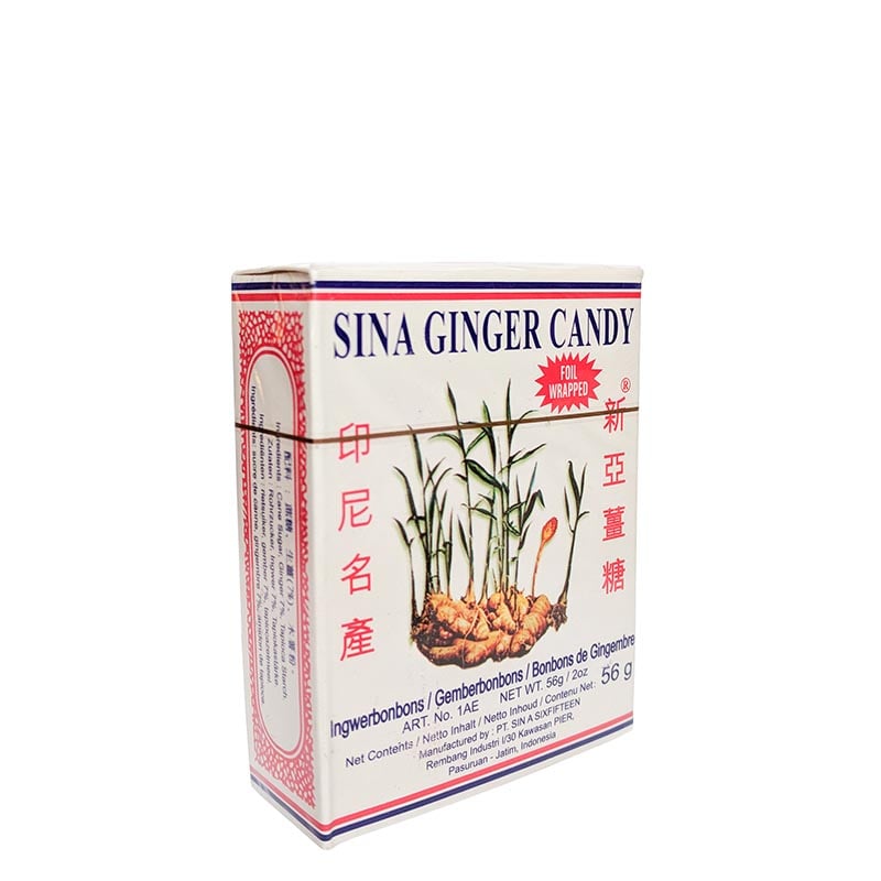 Ingwerkaramell. Zutaten: Rohrzucker, Ingwer, Tapiokastärke. |